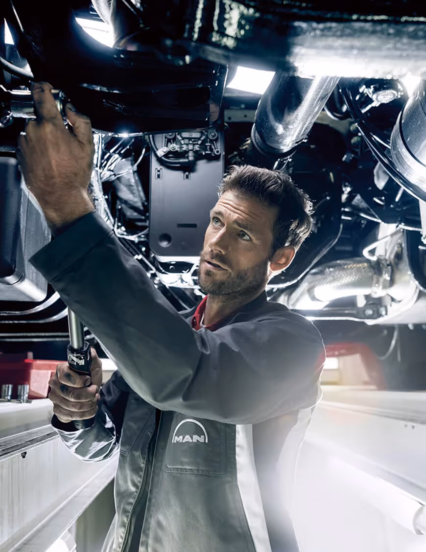 Vår premium helfordonsgaranti täcker hela lastbilen i tre år. Oavsett om det gäller motor, växellåda, drivlina, elektronik, hytt eller chassi kan du känna dig trygg med att MAN står bakom dig med full support.