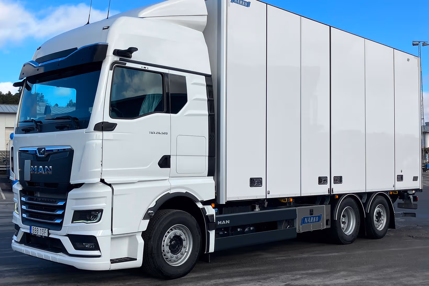 Välutrustad MAN TGX 26.520 med Närko skåp och VBG-drag.