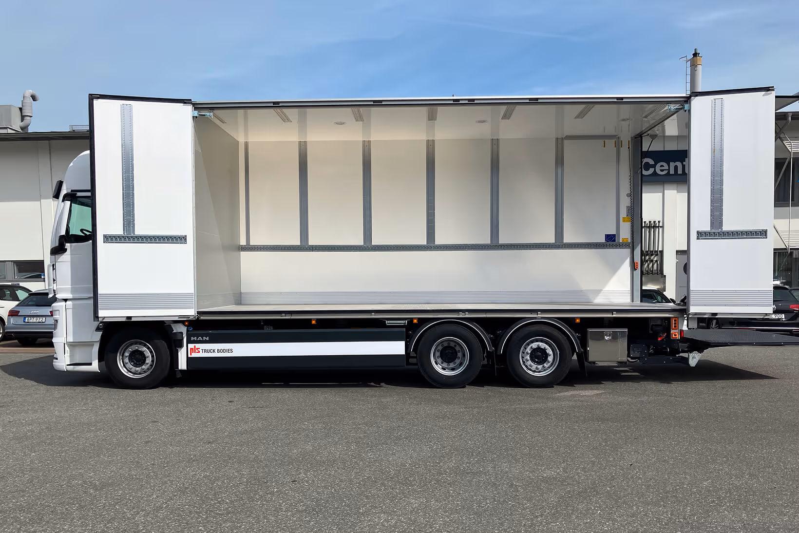 Nu finns denna välutrustade MAN TGX 26.510 6x2-2 LL med PLS-skåp för omgående leverans