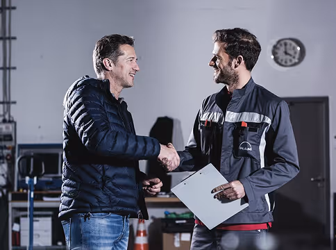 Med MAN Mobile24 får du snabb hjälp – dygnet runt, året om. Vi samordnar assistans vid driftstopp, direkt på plats, och samarbetar med över 2 000 verkstäder i hela Europa för snabb reparation. Din lastbil kommer snabbt ut på vägen igen, vilket minimerar kostsamma driftavbrott. Alltid redo – så att du kan fokusera på ditt uppdrag.