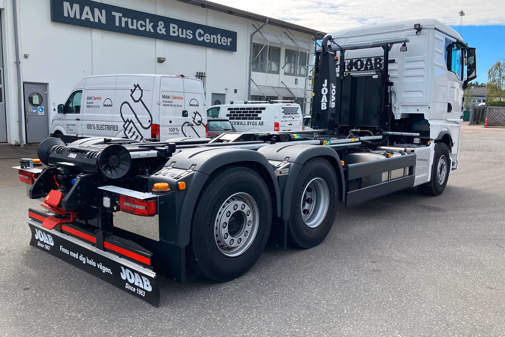 MAN TGX 26.520 6x2-4 BL med JOAB L21 ECO, klar för omgående leverans. Inkluderar 3 års garanti vid serviceavtal. Finns hos MAN Lastbilar Göteborg.