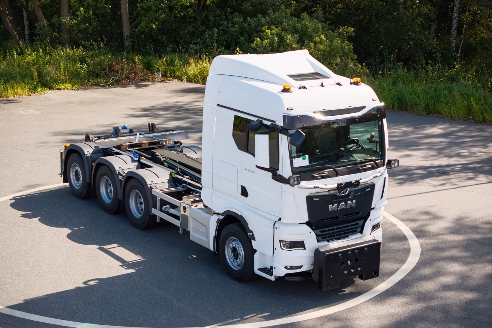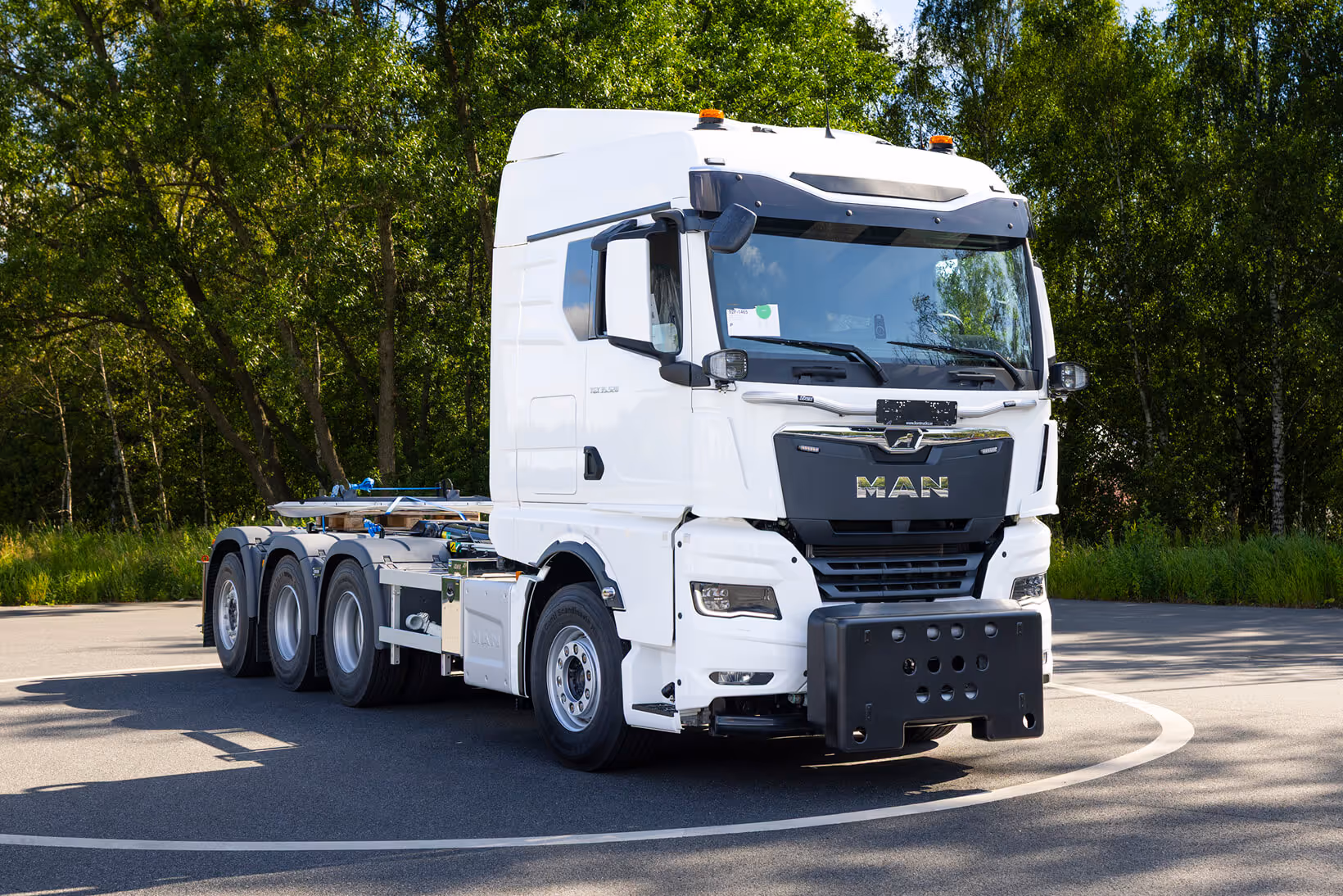 Ny MAN TGX 35.520 8x4-4 lastväxlare med fullplog från JOAB